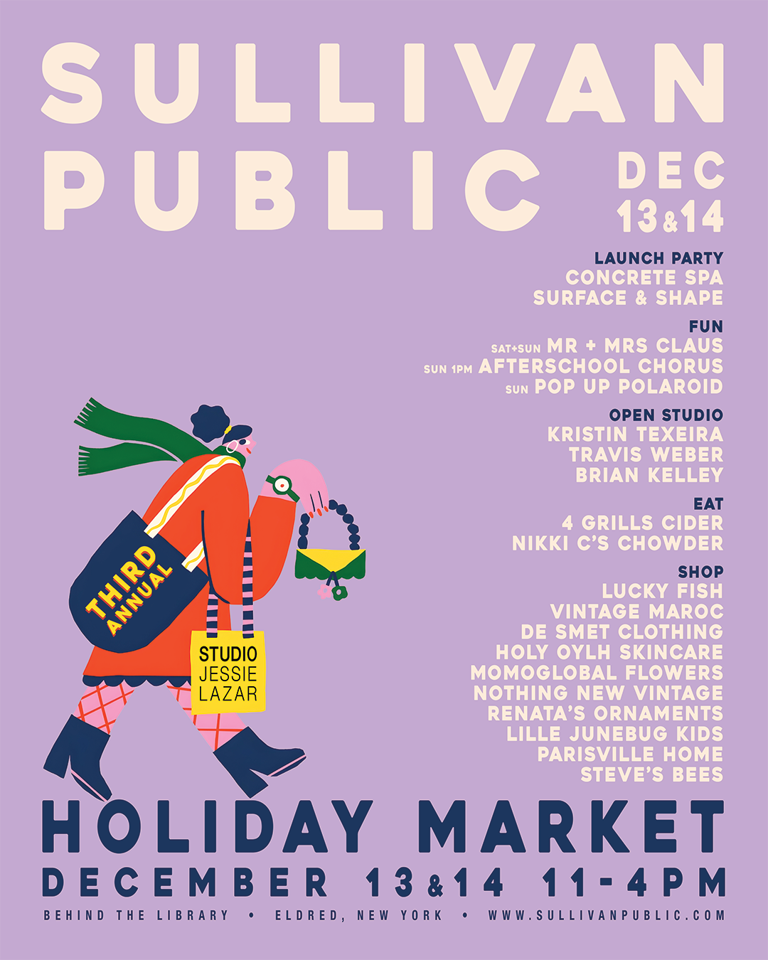 Please join us in the holiday cheer at Sullivan Public’s 3rd annual holiday market. December 13 + 14th